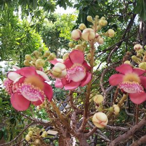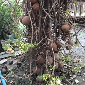 「ホウガンノキの果実」 本当に砲丸にそっくりの球形です 京都府立植物園温室2025/22/7