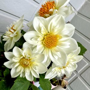 新しくお迎えしたコラレット咲きのクリーム色のダリアちゃん💛 可愛い過ぎて一目見て速攻レジへ♪ 以前何回か地植えに挑戦したのですが根付かず…🥲 今回は鉢植えのまま大切に育てたいと思います🫶