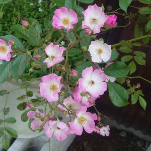 いただきもののつるバラミニバラ。蔵の壁に、何年もすごく適当に這わせてたので、勉強し直して、ちゃんと誘引しまーす!!