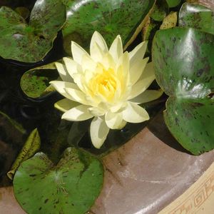 もう一鉢の睡蓮、去年も咲いてくれたね。お日様大好きなんやね!嬉しそうに咲いてます!