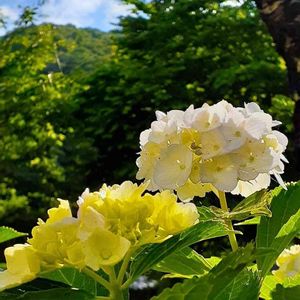 おはようございます! 雨からの久しぶりの朝日。 あじさいが喜んでるー! 朝日を受けて、色が変化してるー!暑くなりそうですね!!