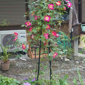 コラボする予定だった つるサマースノーが伸びきらず このような寂しい結果に。 バラとクレマチス 予想通りにならないから面白い って、読みました。 本当に‼️来年に期待‼️