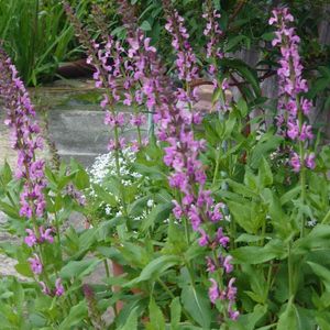 宿根のサルビア。早く咲き揃いました。 今日も雨。軒下に避難です。