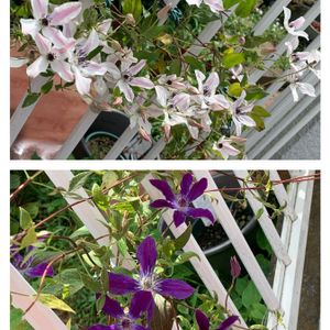 五月の在りし日より🌹 2023 振り返り投稿✨今日はバラとクレマチス💜 その2 ①ヘンダーソニー と モーツァルトレディ💙🌸 ②ペルニール と ジャスミーナ💜💕 ③プレアデス と プシュケランブラー💜🤍 ④オベレク と クリスティアーナ🩷🤍 ⑤アフロボーイ と リナルド💜⚛️ あら こうやって見るとダントツ紫のクレマチスばっかり〜 笑