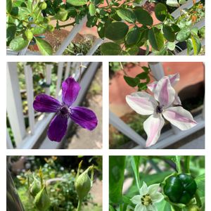 現在の庭の様子🪴 プロローグがやっと芽吹いてきて もうすぐ咲きそうです💕 下はリラの蕾 週頭居ない間に咲いていそうです💦 右下はずーと成らなかったピーマン🫑 ここに来て花もいっぱい咲いてます💦