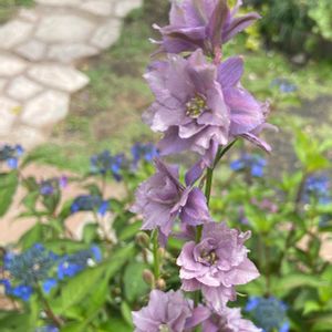 ラークスパー アールグレイが 次々開花しています 今年は八重の株が多そうです❁ 一重もかわいいけど八重のフリフリは格別なかわいさがあります💓 それにしても後ろのブロック塀が残念⤵️😂 なにか工夫したいところよね〜🤣