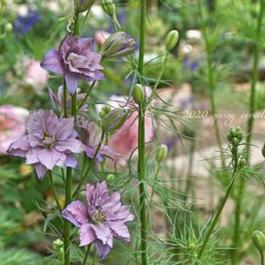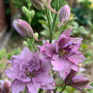 またまた登場🎵 ラークスパー アールグレイ💠 私が想像していたのは八重で黄色い花芯が見える花だったのだけど、うちのコは一重っぽくて花芯が見えない花でした💠 ちょっとだけ ガーン😨だったけど、スモーキーなピンク色はイメージ通り💕 なのでこれはこれでいいかな⤴️ 弱々しそうな見た目に反して 雨が降っても、風が吹いても、倒れることなく咲いています💠