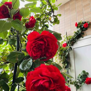 ①娘のお庭のフロレンティーナ 流星と一緒にトレリスに誘引してあるのだけど、正面でなく裏に向かって咲いてました💦 ずいぶん伸びて誘引したのだけど、お花がとても小さい つる仕立てよりも段階剪定の方がよかったかな?と、次の課題が ②ローズユイユナ バラの師匠のご主人が育種されたバラ 淡い色、ピンク白、ラベンダーなどの多い庭でパッと目を引く濃い朱赤 引き締めカラーです🤗 ③娘のお庭の寄せ植えのミニバラ たくさん咲いてきました ④スノーグース 今年はよく伸びています ⑤カナリア 開花の投稿はかなり前にしましたが、今褪色していくお花との対比がとても素敵になってきました💓 昨年はうまく咲かせられなくて難しい印象のバラでしたが、消毒頑張ったらとてもいい感じです
