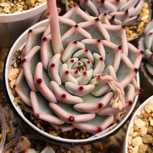 クリスマスキャロル×パラス お外にもある 11/3播種11/11発芽び これは期待交配やったけど微妙な種やけん発芽してくれて嬉しい♡ 春にすぐ蒔くより冷蔵庫で寝かせた方が発芽しやすいみたい それと加温より温度差あった方がよさそう 今年は種蒔き遅かったと思ったけど11月でこの陽気やけんラッキーやった🎶 けっこう微妙な種蒔いたけどほとんど発芽したけん空きポットに上から蒔くことが少なかった あ〜あ アテマじゃないのもアテマで売っとるし 知らん人は飛びついて買っとる まぁ売りよる人も多肉知らん人やけんしゃあないっちゃろうけど…