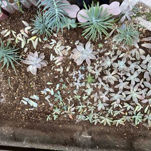 ここ、雨ざらしになるので 前に砂を多くして丈夫な朧月や秋麗を植えていたのですが 根付きが悪く夏に根が浮き出てしまいました。 枯れはしませんでしたが 育ちが悪く そして雑草に覆われ徒長し ヒョロヒョロに。 なので今回は砂を少し避けて植え替えに出た多肉用の土を混ぜてみました。 また朧月と秋麗、その他もろもろ 植えてみました。 ただ、砂でも何処でも元気に育つのが「美空鉾」でした。 画像2枚目、3枚目は 寄せ直しをしたものです。