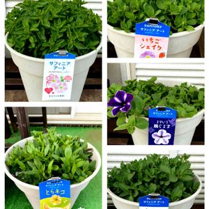 サントリーフラワーズ サフィニアフリル 下が植えた時 上が1ヶ月たちました フリルの混合植え初めて挑戦 満開が楽しみ