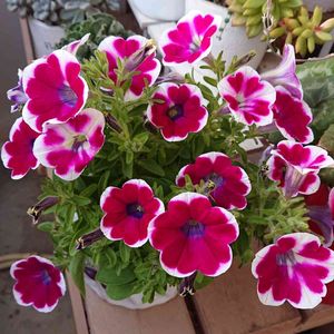 春から秋迄長い期間花🌸が咲くサフィニア 梅雨入り前に刈込み管理で花を長く見る事が出来ます 冬に青々した葉に育てて又春には沢山の花が咲いてくれます