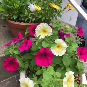 こんにちは😊☀️☀️ 先月、切り戻ししたサフィニアです😊 またいっぱい咲きはじめてくれて嬉しいです🌸🌸🌼🌼✨✨😊🎶🎶