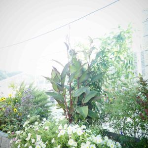 スカスカのメリアンサスマヨールの後ろに見えたらカッコ良いかも!と植えたものの、日射不足とメリアンサスの勢いに押され、成長がゆっくりなカンナさん。 植え替えた方が良いのかな…