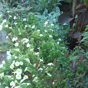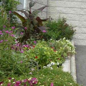 お山の上の工場前の花壇より がんばれペチュニア 次は坂を登って左側の花壇を秋仕様に 補色していく予定なのだけど あまりにも健気にがんばっているので この雨降り続きの1週間がおわって 取り掛かることにしました 台風でぼろぼろになったカンナの葉も復活☆