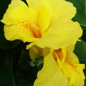 カンナ 和名 檀特(だんどく) 暑ければ暑いほど元気に咲く花です🌼 今年もおつかれさま(๑・̑◡・̑๑) 疲れてるみたいなので おまけしました〜(*´꒳`*)✨✨✨✨🍊