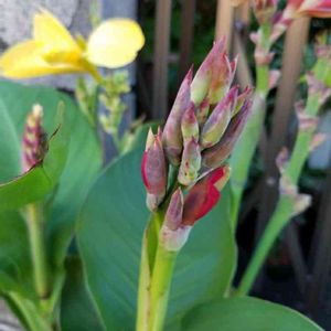 種から育ててるカンナ。 先月の終わりに花が咲出しました。 色は、赤と黄色。 先に咲いていたのがそろそろ終わるなぁ…って思ってたら小さかった花芽が大きくなってきましたよ。 (ФωФ)どぉやら赤い花みたいだよ。