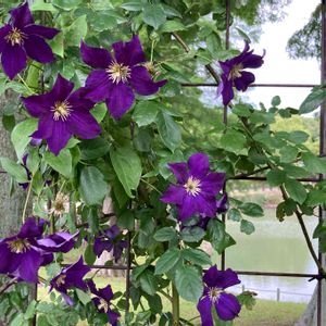 今日も花遊庭🥀𖤣𖥧𖥣から… 💜色のクレマチスが 枝木のフェンスに綺麗に絡んで 咲いてました🍃𓂃𓈒𓏸︎︎︎︎ 雰囲気が素敵(*´˘`*)♡ 今日も素敵な一日を🍀*゜