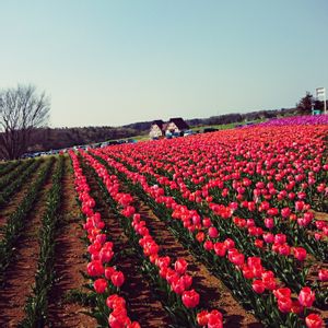 おはようございます☁️ 昨日、ドイツ村に行って来ました。 🌷チューリップがとても綺麗でしたが左側の黄色はまだ固い蕾でした😃