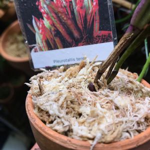 これも植木屋21さんとこで。 Pleurothallis teres プレウロタリス・テレス プレウロあるやん。と思って手に取ったら あ、それ調子崩して状態悪いからあげるよ、と え、まじで⁈ うん、復活するか分からんけど試してみて。 とゆうことでオマケで貰いました。 ブラジル原産で暑さにも強いプレウロタリス。 見た感じ水苔の劣化が気になるのでとりあえず植え替えてから様子を見ようと思います。