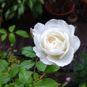 こんにちは😊 今日のお庭から❀.*・゚❀.*・゚ アイスバーク💖 朝スゴい☔🌧で 慌ててこの🌹を 軒下に移動しました(〃´o`)フゥ… 過保護に育てちゃダメなんだろうけど、 無事に咲いて欲しいので〜😅💦