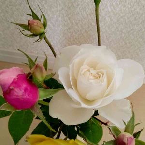 白い薔薇は、うちのアイスバーグ❣️終わったかと思ったら、また咲いてくれて…。ほのかな香りが好きです。