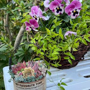 金曜日 有休とって高齢の両親連れて いつもの久住♨️に一泊して来ました〜♨️ 父は足元おぼつかないから…… みんな行動がノロノロ😟 私は 今日 久留米のナーセリーさんの イベントに帰り寄りたいから 焦る焦る😅💦 お目当てのショーンさんの寄植え🌸 かろうじて お迎え出来ました〜(*´∇`)。♪:*° TOMOZOUENさんのお買い得苗💖