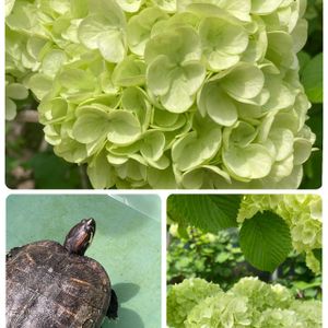 ①今日のお花 先日行ったぴぴちゃんのお店で選んだエケベリア アマビエとムーンストーン ②いつも行く緑化センターにいる 亀🐢 仲が良いのか悪いのか 種類の違う亀2匹