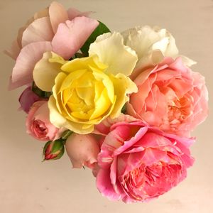 皆様ご無事でありますように。 おやすみなさい😴⭐ 台風前にカットしたバラ🌹から ボレロ、ジュビリーセレブレーション、クロードモネ、モリニュー、ギィドゥモーパッサン 、ディスタントドラムス