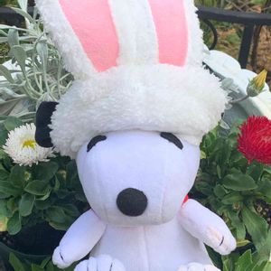 スヌーピーちゃんがうさ耳つけて庭で遊んでいました❤️赤と白のデイジーさんと一緒にパチリ🐰🏷毎月2日はスヌーピーの日 🏷チームスヌー参加させてください❤️ 🏷チームスヌー 会員番号 9番 みぃでしたー😊