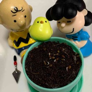 ガチャガチャで小鳥さんとネモフィラさんの鉢植え🪴セットがありましたので、タネを蒔いたら芽が出てきました🌱💕ルーシー、チャーリーブラウンも楽しみにしているようです🌱🪴💕 SNOOPYさん主催の 🏷チームスヌー💕💕 🏷チームスヌー会員番号9番 みぃでした💕😊
