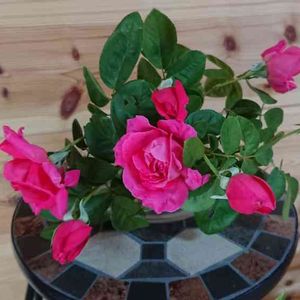 鮮やかなピンクの薔薇マリアカラスを切りました。秋にまた咲いてくれますように。