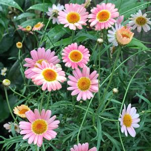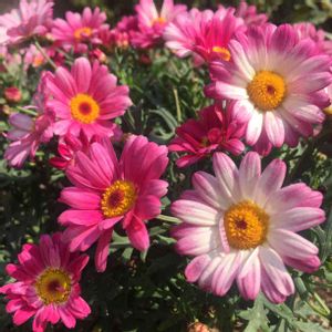 マーガレットモリンバ どんどん枝分かれして咲いています。 一つの株ですが、咲き進むと色が変わるので、ピンクのグラデーションがとてもかわいいです💕