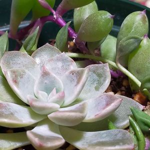 多肉弁当に入っていたこの子。 粉を吹いたり、色付いたり、艶々ピカピカ近頃すっかり思春期です。 名前を調べてやりたいのだけれど… エケベリアの名前検索なんて、生きてる内に終わる気がしない。 艶子ちゃんにしようかな♪
