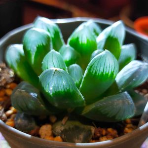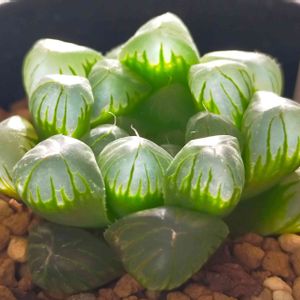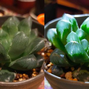 おはようございます😊 部屋の照明を少し落として、ライトを当てるとこうなります。 ハオルチアに光が入ると、中で反射するんですね。 内側から発光しているように見えて綺麗です🤍𓐍𓏸𓈒