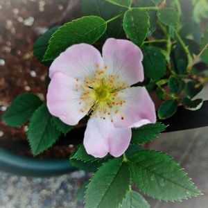 ロサ・カニーナの一番花咲きました🌹 昨年はロサ・カニーナの実(ローズヒップ)み〜んな虫さんに食べられて 収穫できなかった💦 今年はどーかなー?? 薔薇科は虫さんと病気が大変だね😅 実が育ちますように🙏