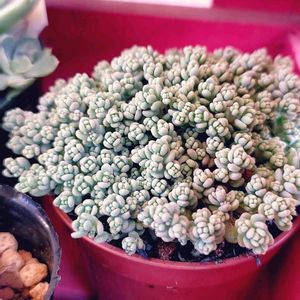 セダムを入れたトレーの中で元気なゴールドビューティーと 同じトレーでわずかに残った木立ちブレビフォリウム 鉢に植えているものより真っ赤になって可愛いです