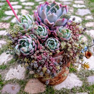 ①②pic ブレビフォリウム そよ風の天使だか天使のそよ風… 単独で増やしてたが 今年の春先??我慢できずに寄せた… 謎ベリアは全く可愛く無い色のエケなんだけど冬だけオレンジっぽくなりかわいい…かわいいというか、品のある大人の女に早替わり 暖かい季節は色気も素っ気も無くて写真写りも最悪なんだけどね〜 で、手前のピョーンって先っちょしか粒が残ってないタイトゴメふうセダム…名前なんつったっけ???絶滅せずに残ったビックリ!Σ(゚ω゚ノ)ノ 名前分かる人おる??おせ〜て ③pic 夏のダメージが酷くて 汚い葉だけど… イェーーイ!!君を好きでよかった このまま ずっと ずっと 死ぬまでハッピー バンザーーイ!!君に会えてよかった このまま ずっと ずっと ラララ 2人で〜〜🎵 2人って…貴方5〜6株居ますけど… 今時咲く気満々の強気な ピーチ(ʘ̆ʚʘ̆๑) プッリデさま