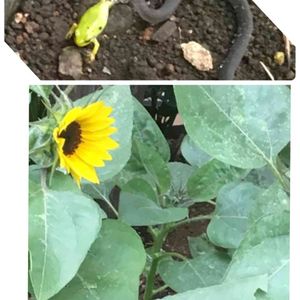 おはようございます! 枕木プランターの中からヘビ🐍が…😱 まさかここに住むつもり〰️💣 小さいので子供🐍? 何ヘビでしょうか?