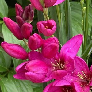 イキシア💕 欲しかったお花🌸 か細いけど綺麗でうっとり😍 我が家で咲いてくれて嬉しい💓 白っぽい蕾もあるので楽しみです🎵
