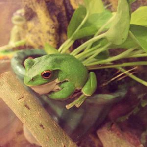 こんなポトス絡まった状態で何時間も身動き1つしない当たり前の日常🐸