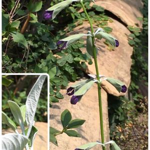 ✨✨サルビア ディスコロール✨✨ 花茎を伸ばして紫黒色のお花が咲きました🎶💕 白いガクと紫黒色のお花のコントラストが素敵です💖 葉っぱの表と裏のコントラストも💖 花茎がムシトリナデシコの様にベタベタしています(๑˃̵ᴗ˂̵)