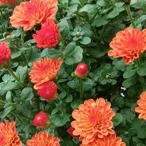 🍀おはようございます🍀 ガーデンマム ジジ🧡 満開になりました(✿^‿^) 親株のジジも 咲き始めていて楽しみです♫ 種蒔きジニアの横では 薔薇フェアリーも咲いています♫ こぼれ種からのマリーゴールドは 鮮やかな花色で咲き 元気をもらっています✧◝(⁰▿⁰)◜✧