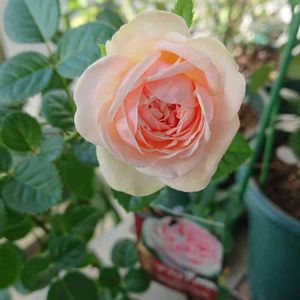 バラ アフロディーテの1番花 ベージュピンクな大人カラー ネット通販で安くなってたのを発見 ポチっ 我慢がきかないベランダーです…
