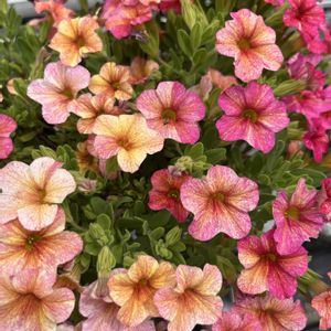 我が家のカリブラコア 梅雨前に切り戻し、今はこんな感じ.* ꕤ︎︎ ①②カリタスティック *カプチーノ* ③ミリオンベル *アンティークオレンジ* どちらも、ちょっと目を引く花柄です