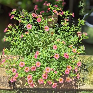 1週間前にもアップしたミリオンベル💕 一気にたくさん咲いてきました⸜(*ˊᗜˋ*)⸝ お名前はアンティークオレンジ🍊なんだけど、咲き始めはこんなピンク色です💖 じつはナメクジ被害からの復活で 枝がビョーンとなってるんだけど 鉢を回してそんな姿がバレないようになんとか撮影(笑) パッと見ではビョーンは分からないよね💕︎ 🏷19日はピンクの日! 🏷ピンクワールドへようこそ 付けさせていただきます🤚