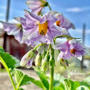 今日のお花*ジャガイモ🥔 ジム友さんちの畑より… 素敵な色合いにウットリ☺️💜🤍 メークイン、美しいお花が咲きます。 (5月に撮影)