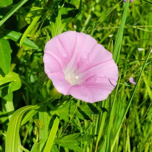 近所の田んぼへ花活に行きました🚶♀️💕🎶 農道の両脇には、可愛らしいお花が花盛りでした🌿💕🎶 マメアサガオ ヒルガオ科 サツマイモ属 別名 ヒラミホシアサガオ、ヒメアサガオ 日本では帰化植物のひとつ。 茎は蔓となってよく分岐し、他の物に巻き付いて長さ数メートルになる。 葉は長い葉柄を持ち互生し、先の尖った長卵形から心臓形で、先がだんだん細まるものが多い。 葉縁は全縁であるが、まれに3裂するものもある、形は変わりやすい。 花期は夏から秋にかけて。 葉腋に1–2本の花柄を出し、直径1.5cmほどの淡紅色から白色の漏斗形の花を1–2個、まれに数個つける。 花柄は無毛でイボ状の突起が密生し、稜がある。 花冠は上から見ると五角形から星形。 なんとも芸術的なお花でした✨🤍🎶 撮影 9月29日