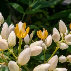 ぷっくり膨らみ…弾けて開花✨南天🫒 ブンブンとクマバチさんが花びら散らしては採蜜してる! ピンと合わせてる間に移動しちゃうからクマさんは画角にいなーい😭