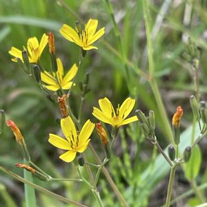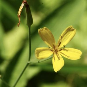 おはようございます。 今日は雨降りですね、先日出会いました野の花です。 ニガナ🍀 初めての出会いです。 葉や茎を切ると苦みのある乳液が出ることから「苦菜」という名前になりました。 小さくて黄色が可愛いです。 昔から親しまれた菜でゆでて食べることができるそうです。 間違えていましたら教えてください。 6月9日撮影